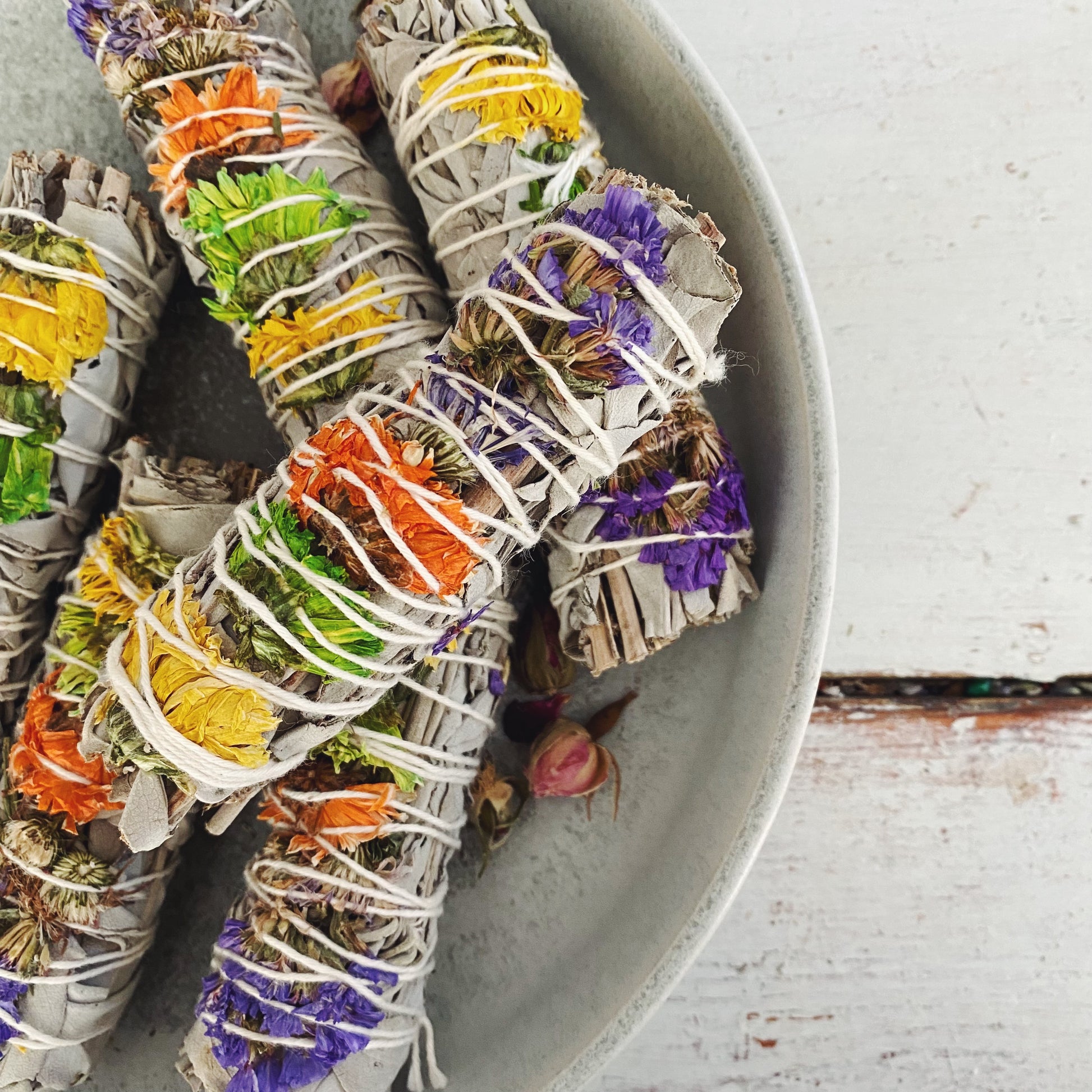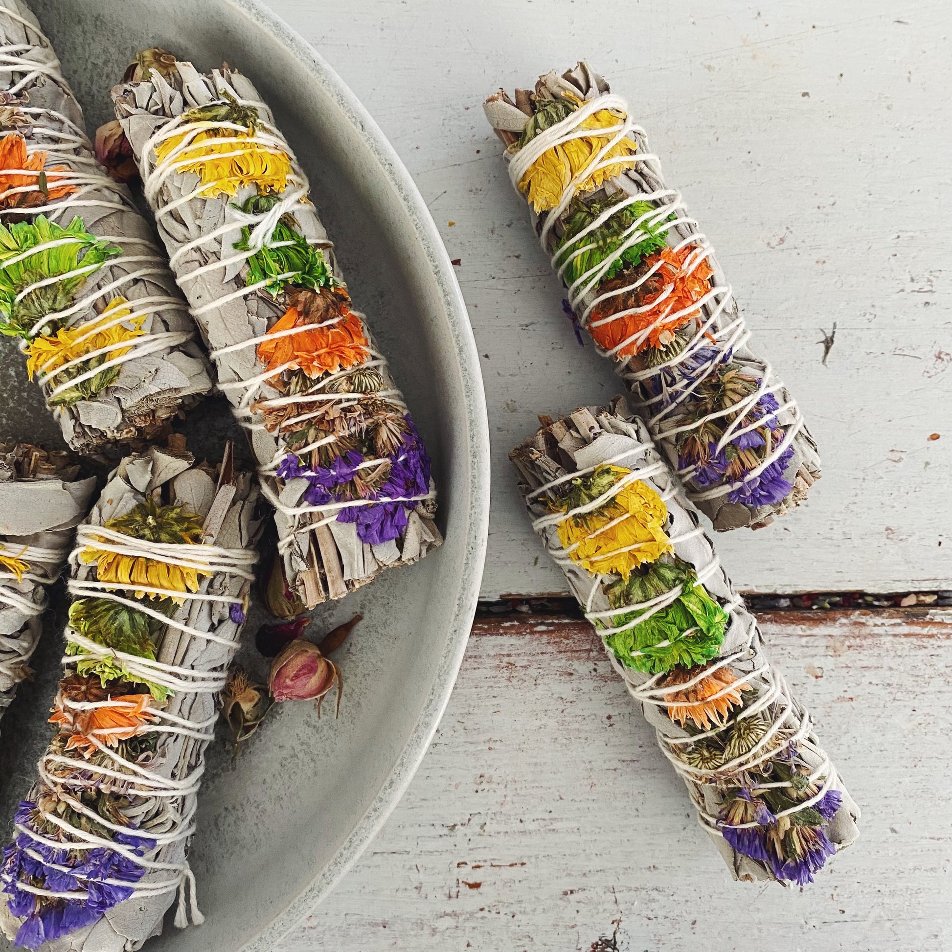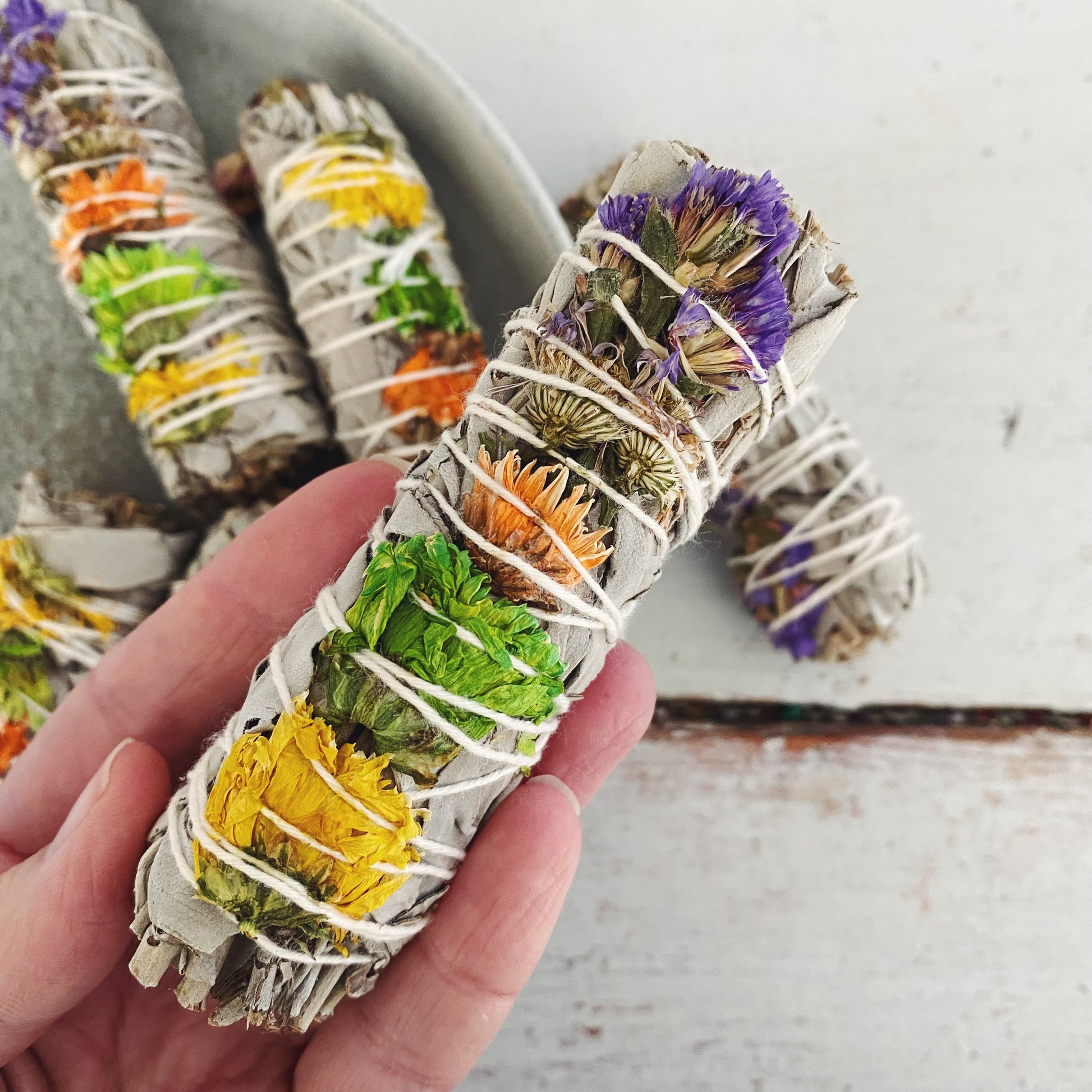 This white sage smudge stick is made from the silver-white leaves of the Salvia Apiana plant which grows on the coast of California. It has been dried and bundled with dried botanicals for positive happy vibes whilst you smudge.